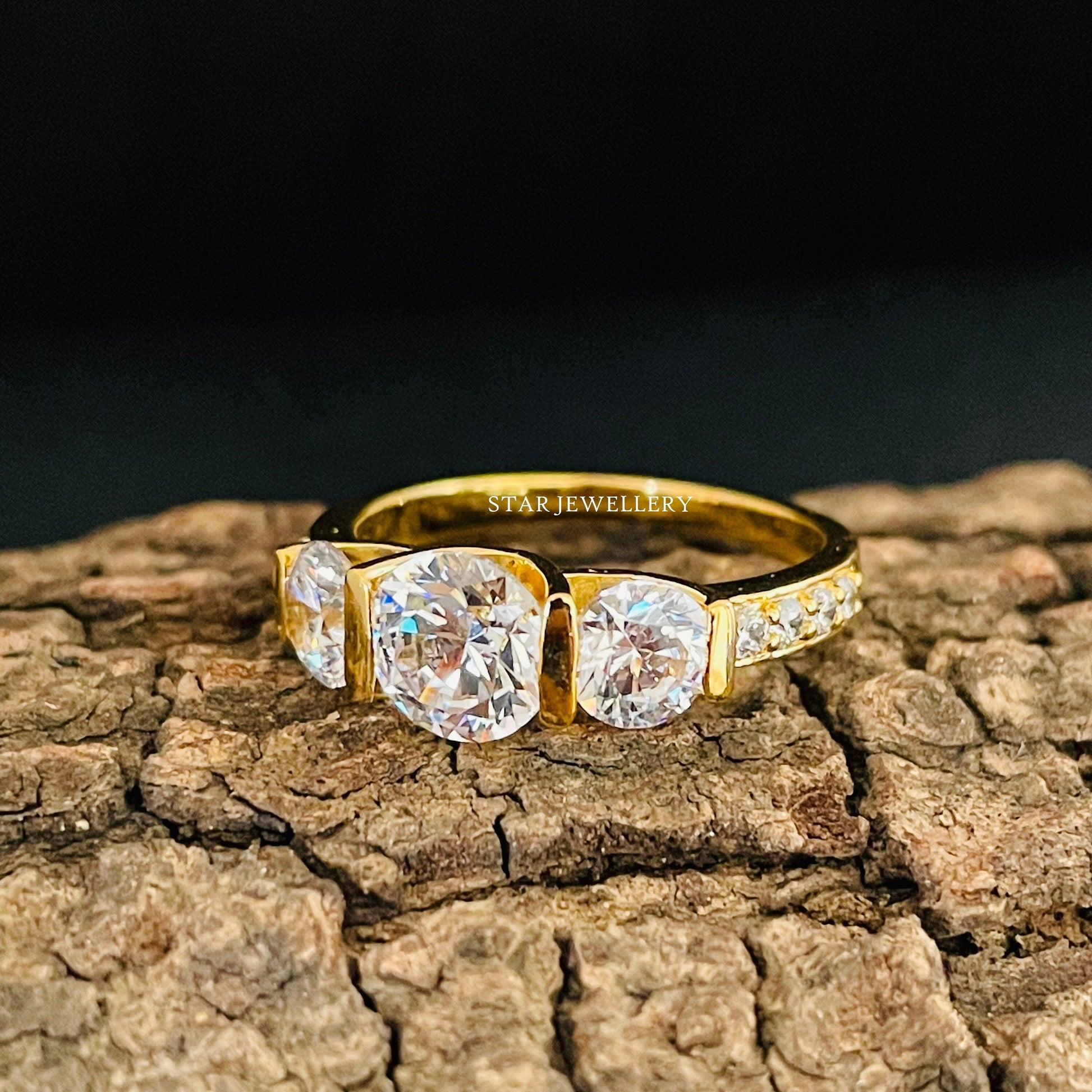 Three Stone ring is widely used as wedding ring, engagement ring, anniversary ring or even as birthday ring. The ring is made with Eco Friendly Lab Grown Diamond and it looks perfect for gifting ideas. Also the ring is widely popular to represent the birth of the first child as couple turns into three. The ring is used as the mark of three children of the family as well. The perfect anniversary gift as the representation of the children in terms of sparkling diamonds.