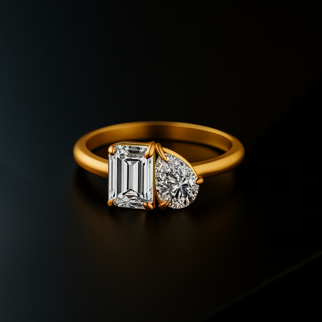 Toi Et Moi Pear Cut and Emerald Cut IGI Certified Lab Grown Diamond Ring