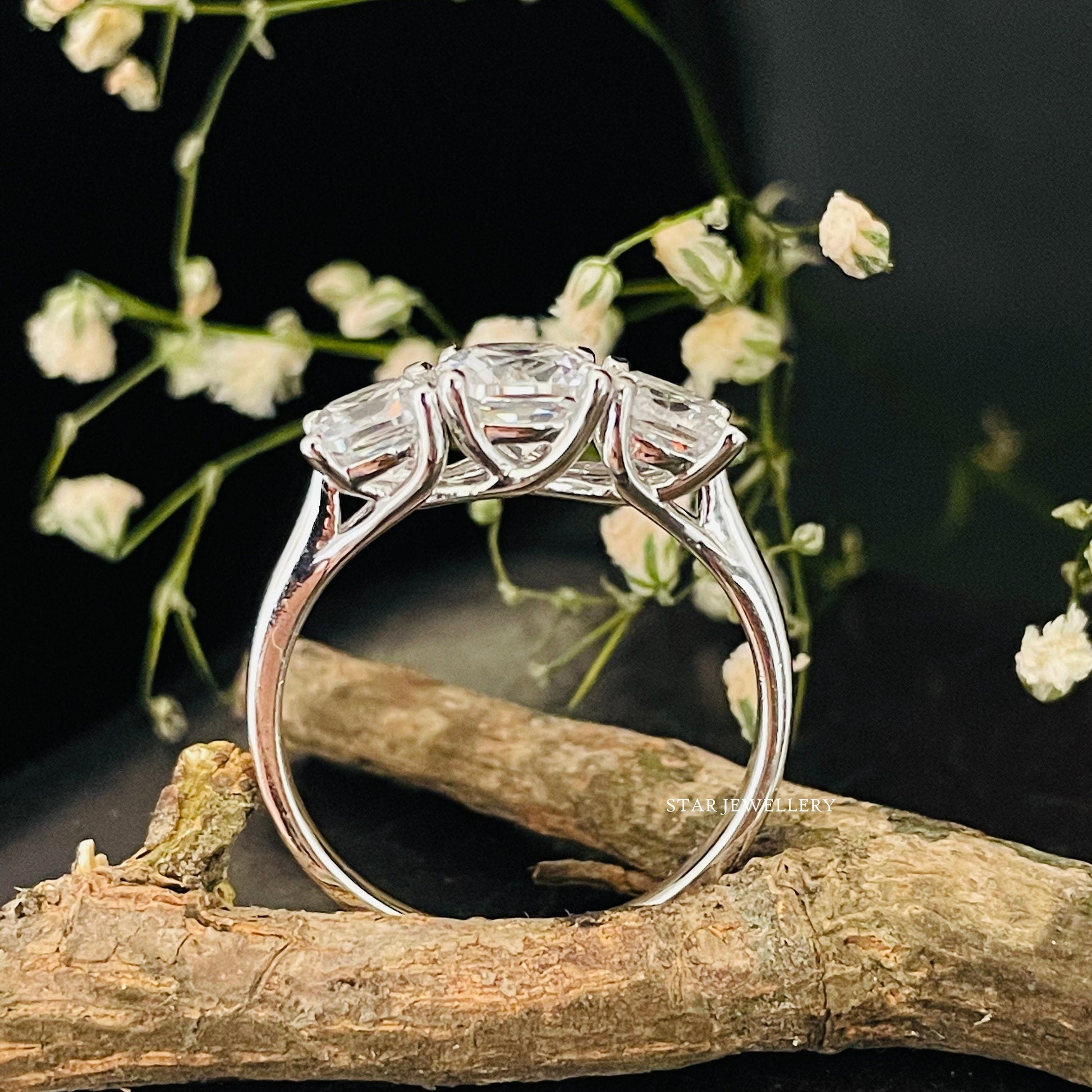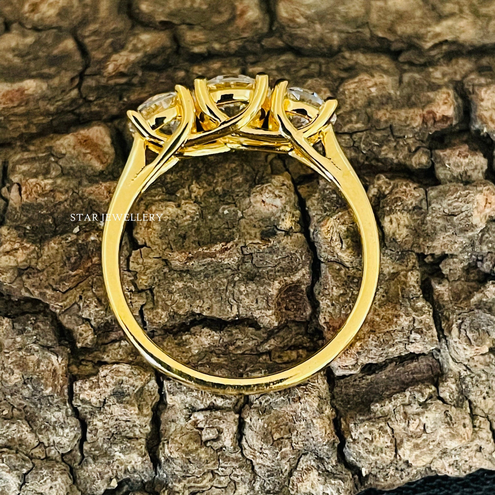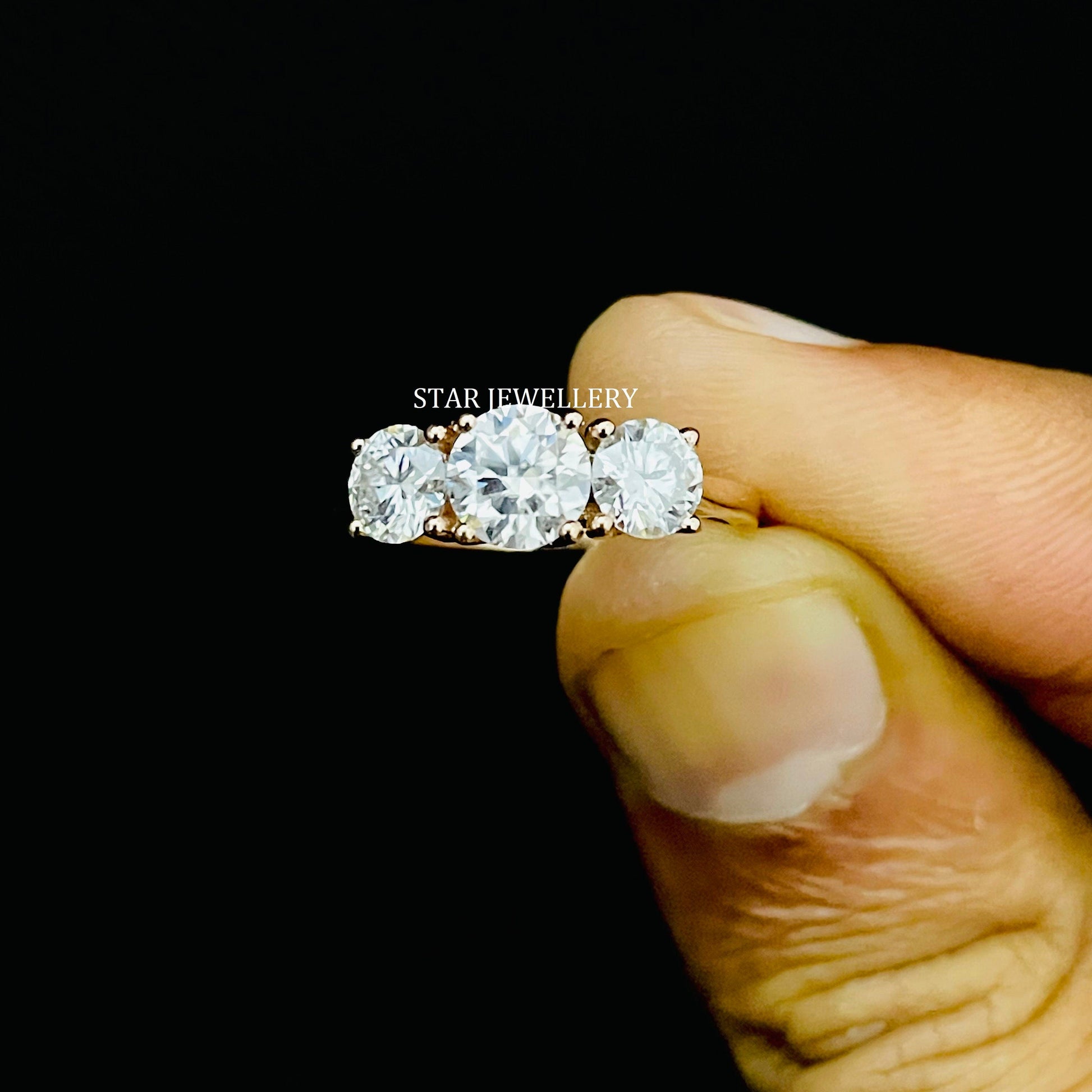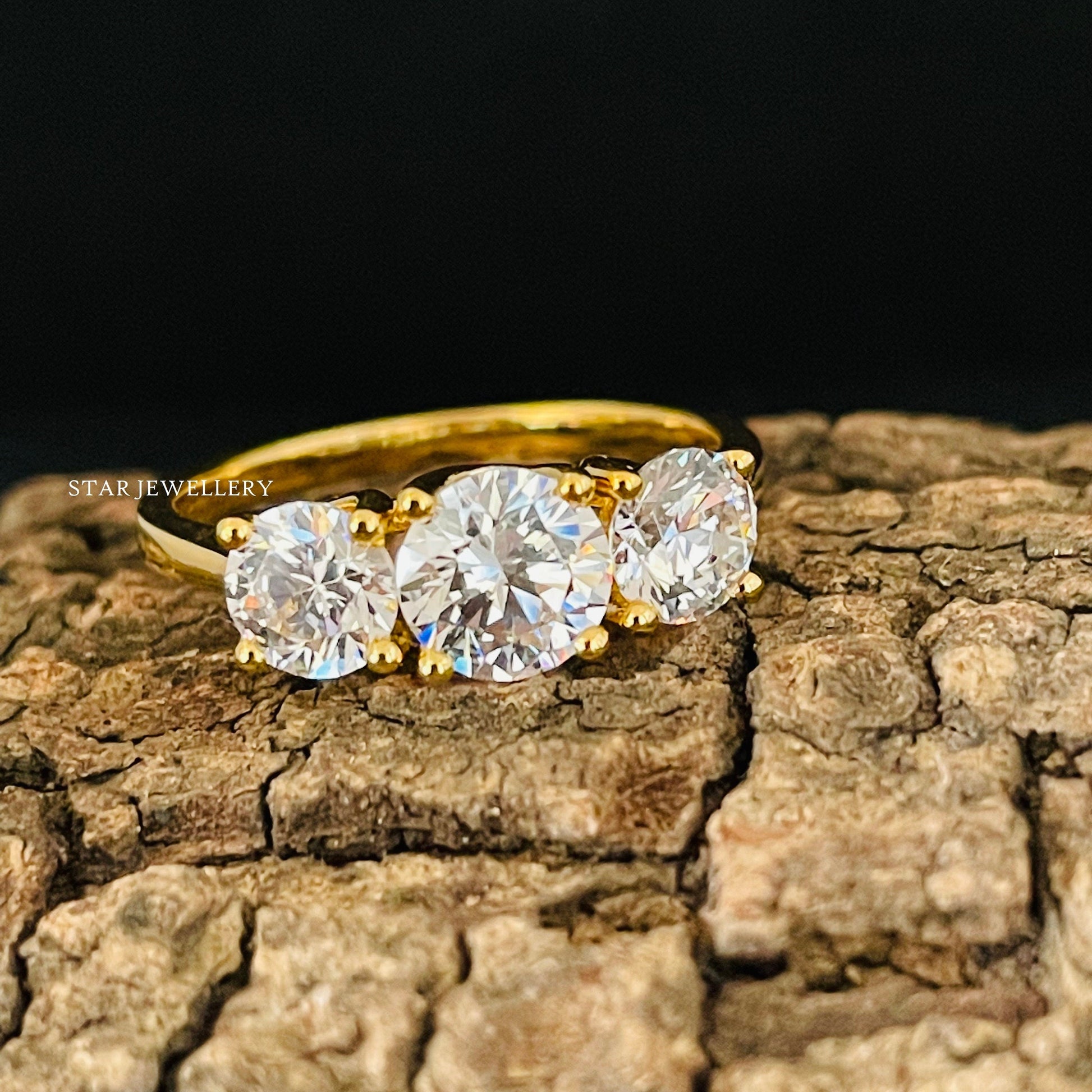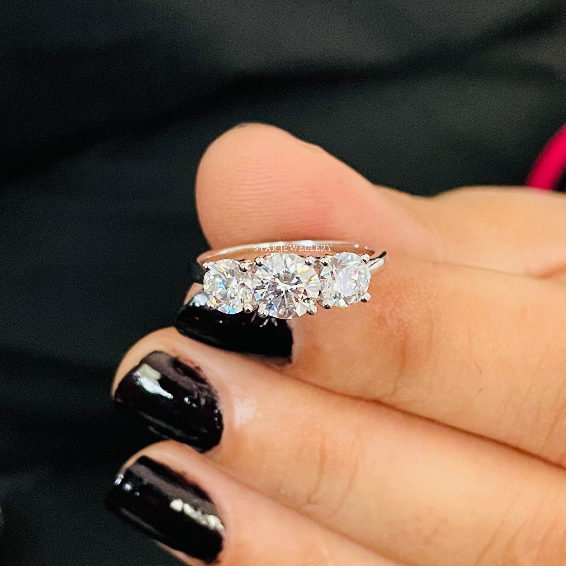 Trio Stone CVD Diamond Engagement Ring, Three Stone Ring, TRILOGY RING, Round Cut Lab Grown Diamond Engagement Ring, Gift For Her